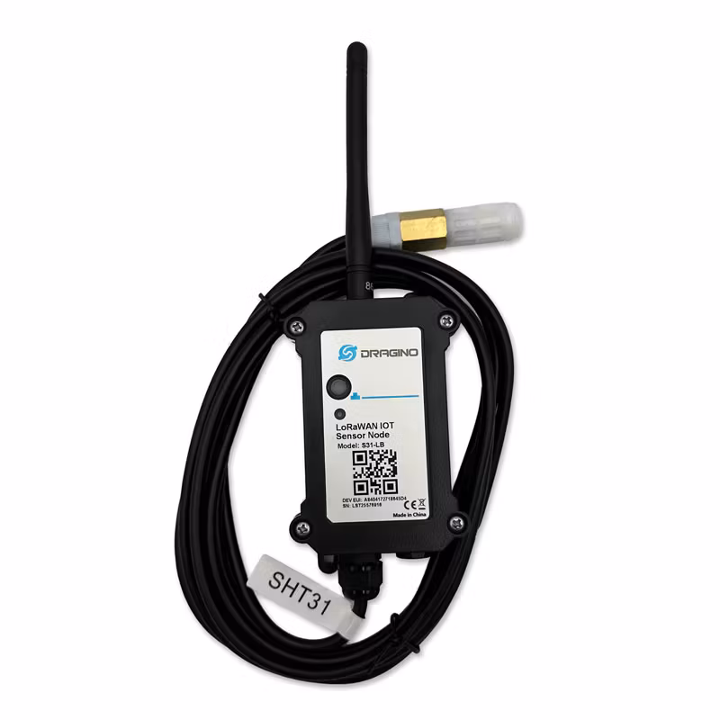 Dragino S31 är en temperatur- och luftfuktighetssensor med hög tillförlitlighet. Sensorn är designad för långvarig användning utomhus och Lora-radiotekniken som används gör att den kan skicka data över långa avstånd. S31-LB stöder temperatur- och luftfuktighetslarm.